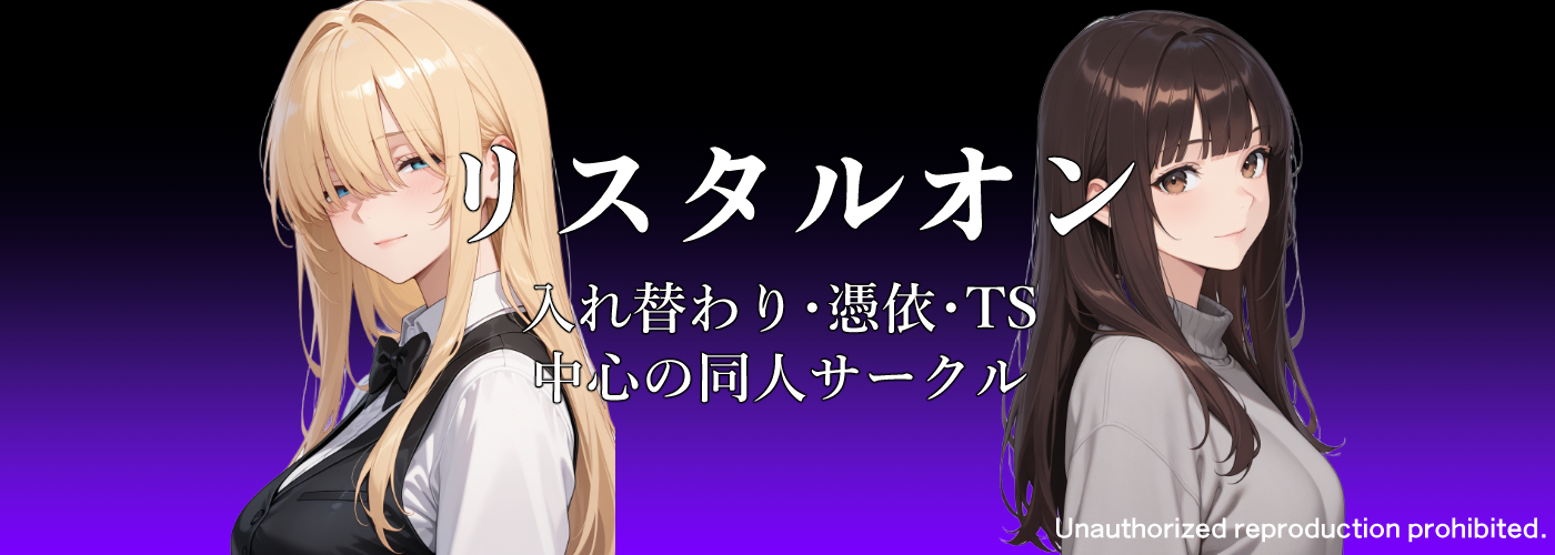 憑依・入れ替わり・TS(性転換)を中心にした同人誌を制作しているサークル「リスタルオン」の公式サイトです。